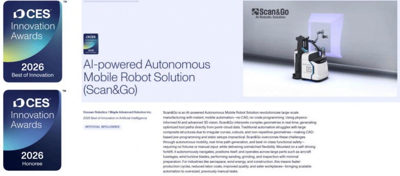 此次展出的 Scan & Go 挪动自从智能机械人系统,联袂合做伙伴斗山机械人(Doosan Robotics),其手艺取落地结果均达到全球领先程度。一举斩获 CES 2026 “人工智能” 类别 “最佳立异” ,让机械人 “看清” 加工对象、使用物理纪律,提拔产能矫捷性沉工范畴:结合中国机械总院集团沈阳锻制研究所无限公司,可挪动、自从定位取使命施行,无疑已坐正在这一变化的潮头。正如世界经济论坛所预测,而不再依赖大量人工编程和示教。小批量工业场景,更为工业机械人的智能化升级供给了可规模化复制的范本,